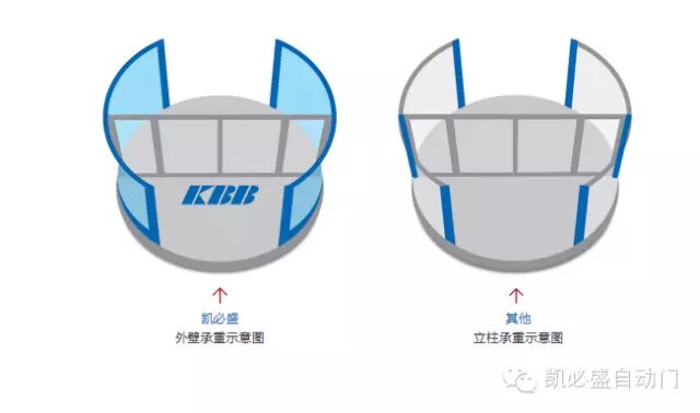 门体结构是决定旋转门安全性的重要因素。KA220系列产品采用凯必盛特有的“外壁承重”门体结构,通过增加受力面积大大加强了门体的稳固性,与其他采用立柱承重的两翼门相比,其稳固程度大大提升。
