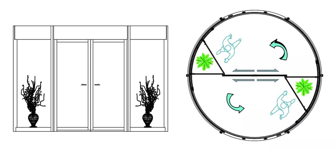 两翼自动旋转门是一种具有宽敞分隔间的双门翼旋转门,设计时尚、美观且具有良好的通行能力。