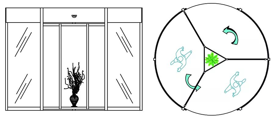 功能齐全的两翼自动旋转门有助于为机场、医院、银行、酒店、超级市场等建筑提供系统的高人流量进出口解决方案。