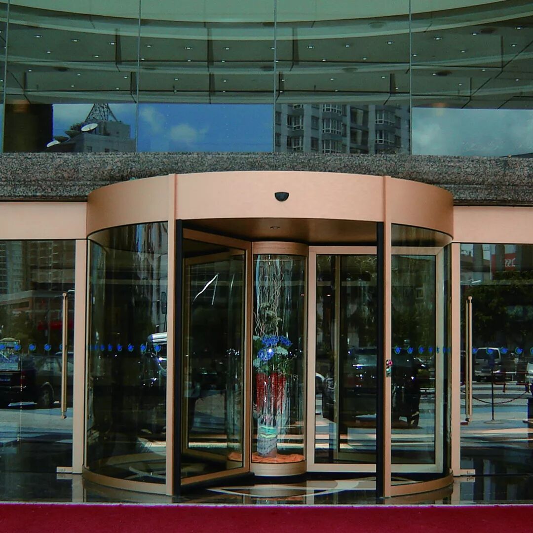 水晶旋转门采用了具有良好通透性且坚固的夹胶玻璃材料,通过精心的设计传统与现代玻璃幕墙设计风格相结合,不仅美观同时又不失古典建筑风格,多样化的配置使得水晶旋转门成为中等通行量建筑最佳选择,例如酒店、办公室以及许多其它类型的建筑。